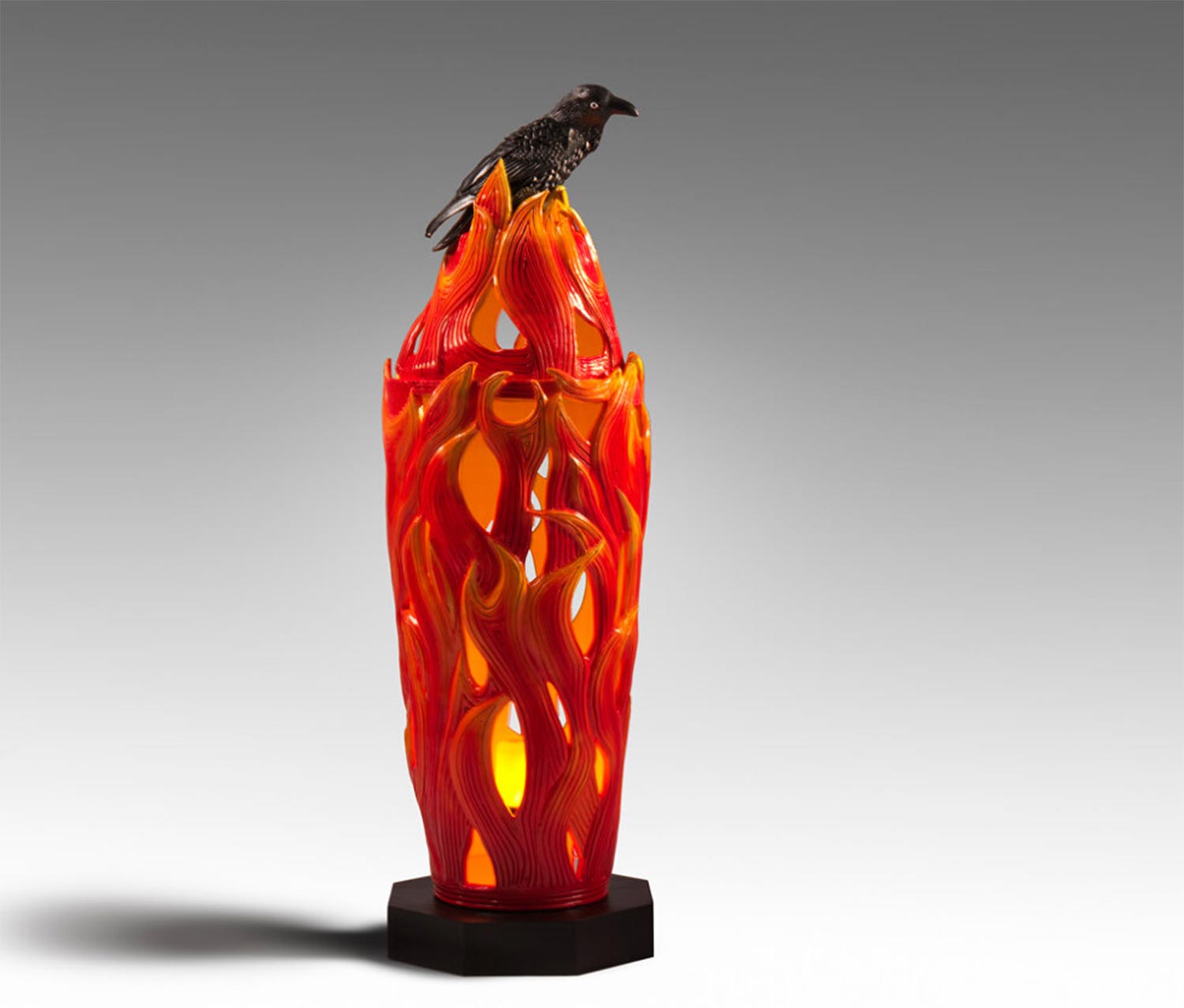 Standing at 1.14 metres high with an internal led light that flickers to give it its flame like glimmer. This artwork was Sean's KHT Blak Design Artwork. How Waan turned Black was purchased by the National Gallery of Australia for their collection.
